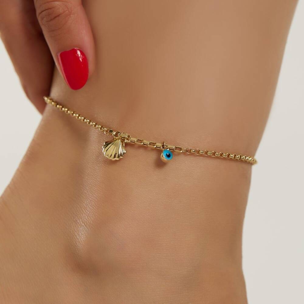 İstiridye Ve Nazar Boncuklu Altın Halhal - 1