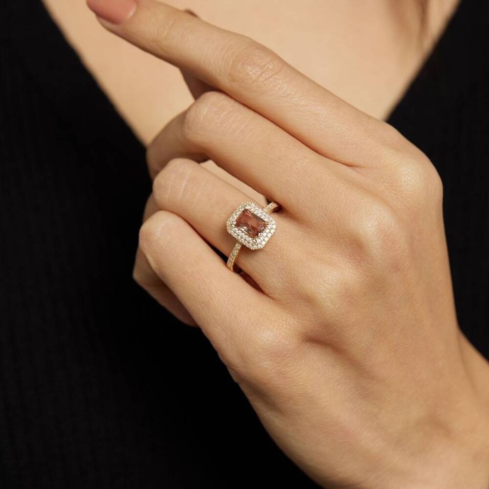 Kahverengi Baget Taşlı Altın Yüzük - 1