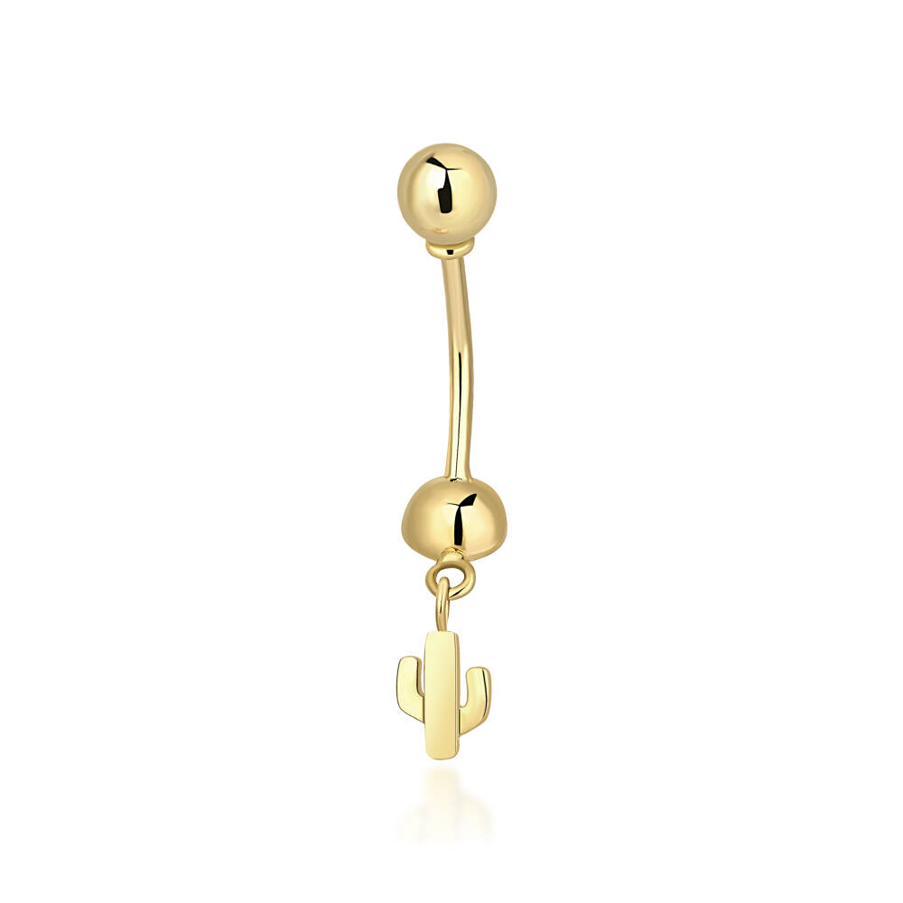 Kaktüs Sallantılı Altın Göbek Piercingi