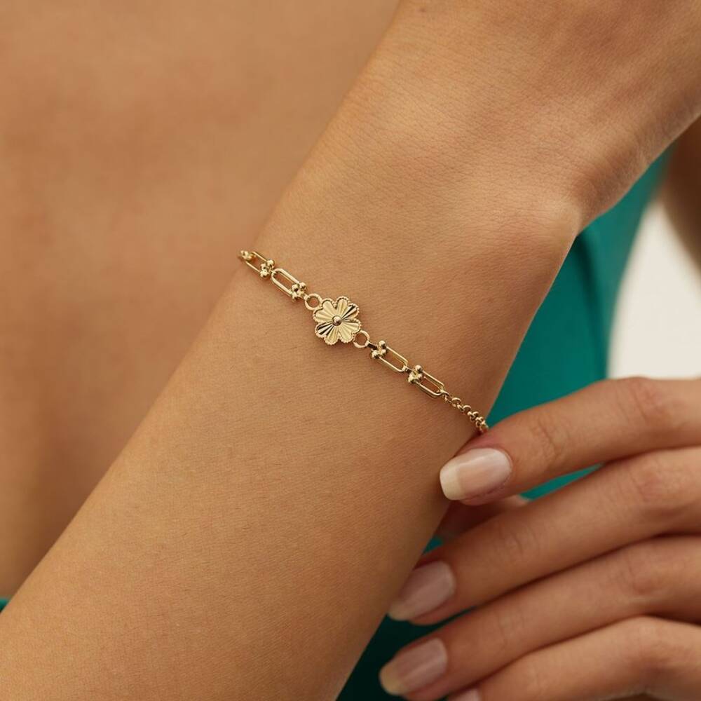 Kalemli Çiçek İtalyan Ataş Zincirli Altın Bileklik - 1