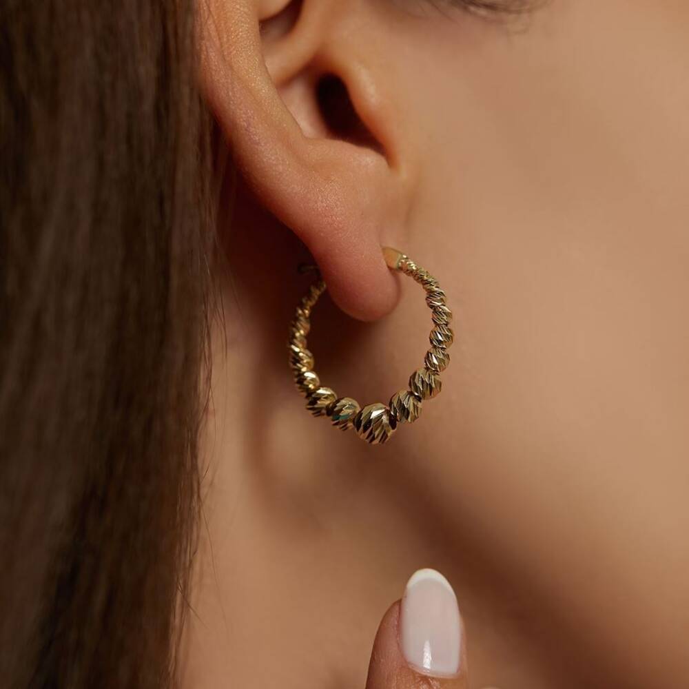 Kalemli Dorika Top Halka Altın Küpe - 2