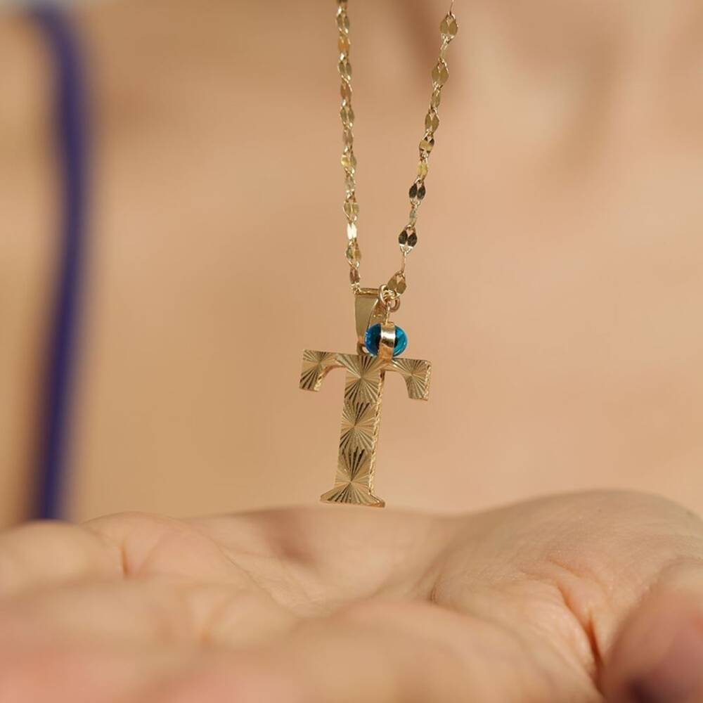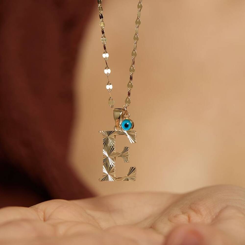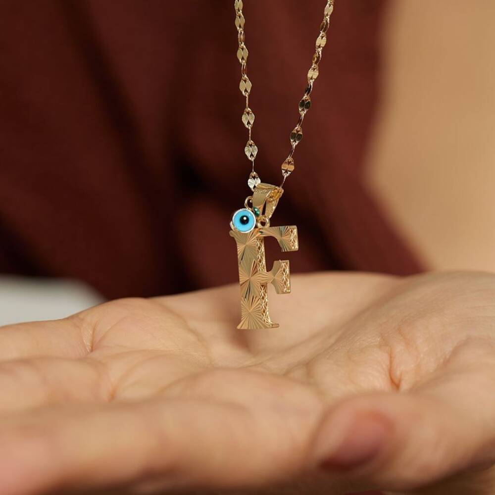 Kalemli Nazar Boncuklu Mega Harf Altın Kolye