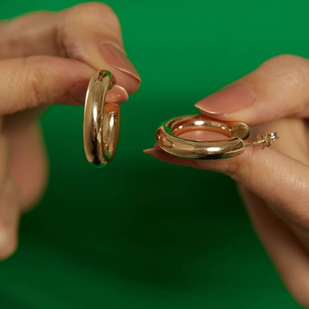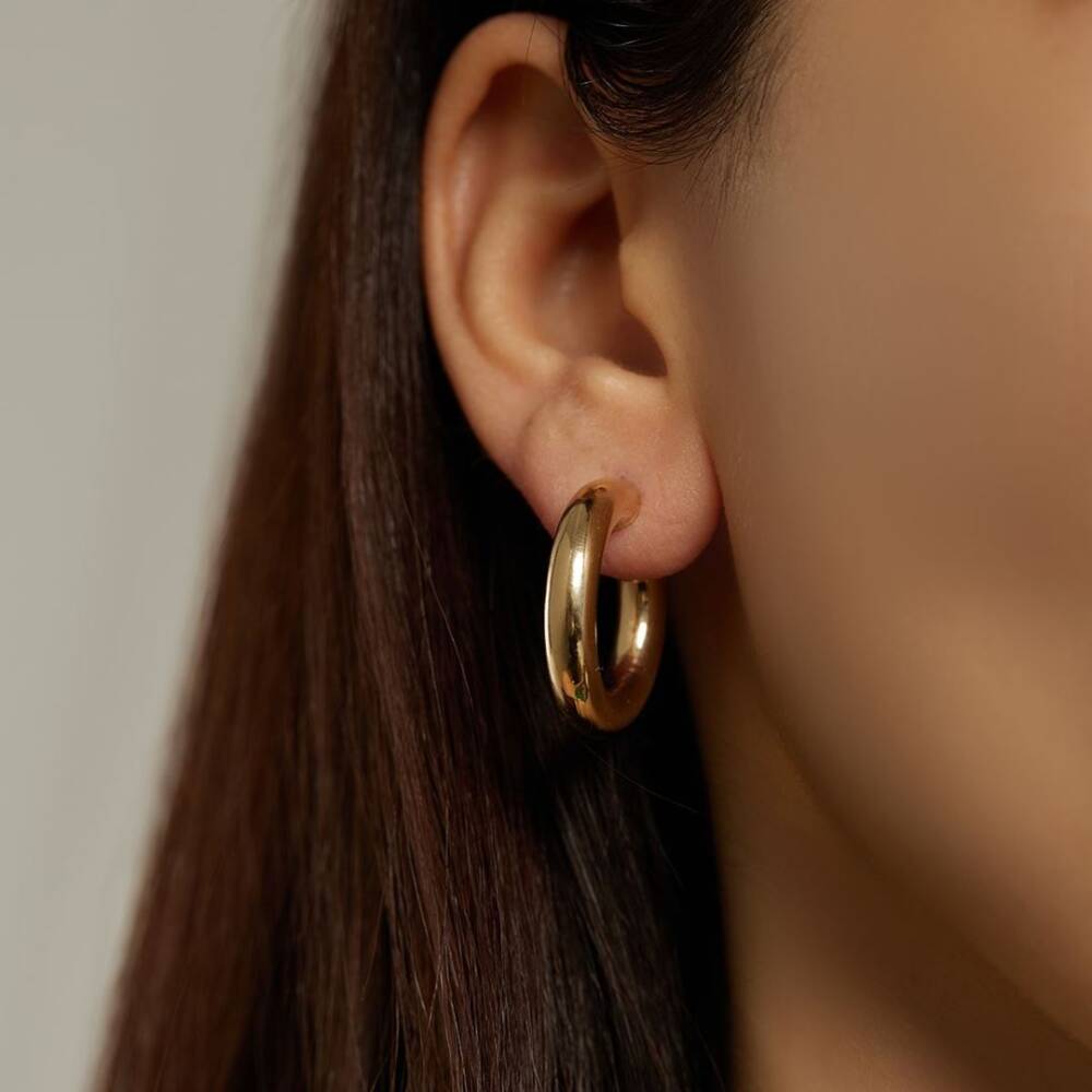 Kalın Bombeli Altın Halka Küpe - 1