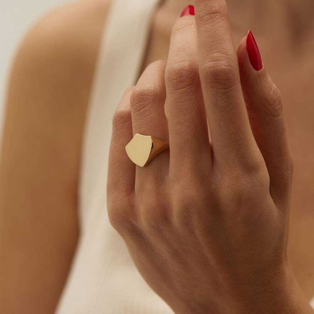 Kalkan Plaka Model Şövalye Altın Yüzük - 1