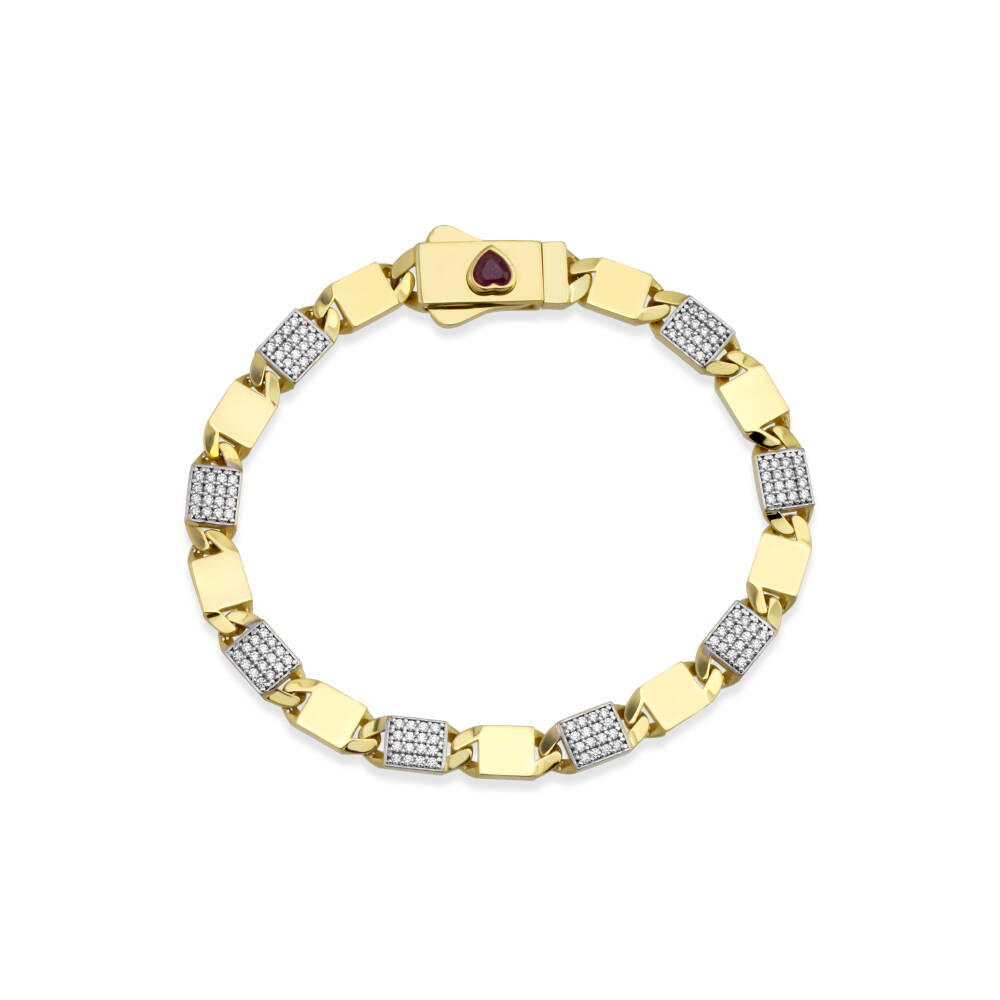 Kalp Detaylı Taşlı Geometrik Altın Bileklik - 1