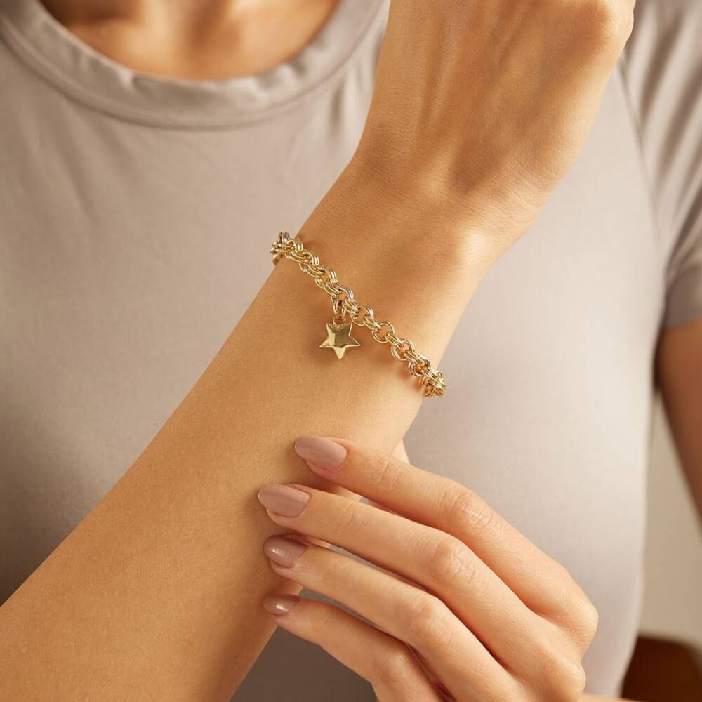 Kalp Ve Yıldız Sallantılı Altın Zincir Bileklik - 1