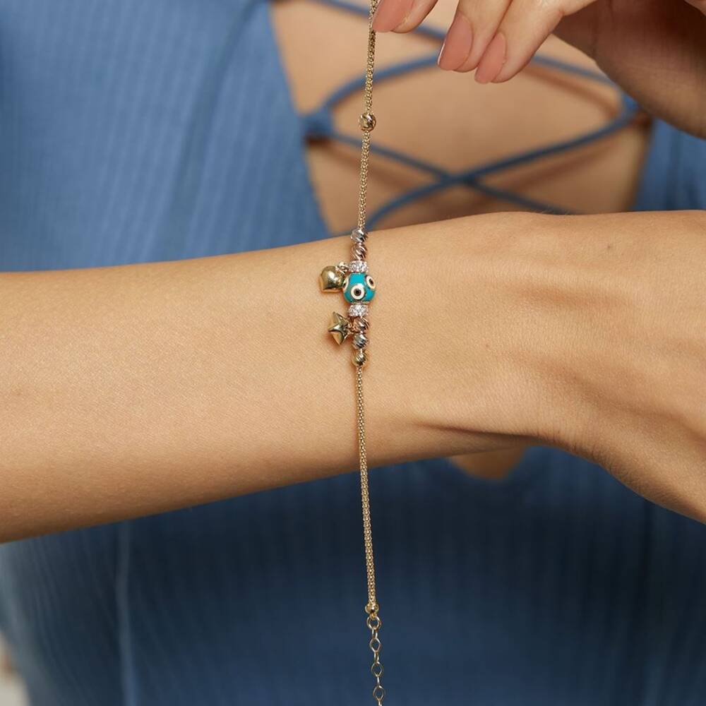 Kalp Ve Yıldız Sallantılı Dorikalı Altın Şans Bilekliği - 1