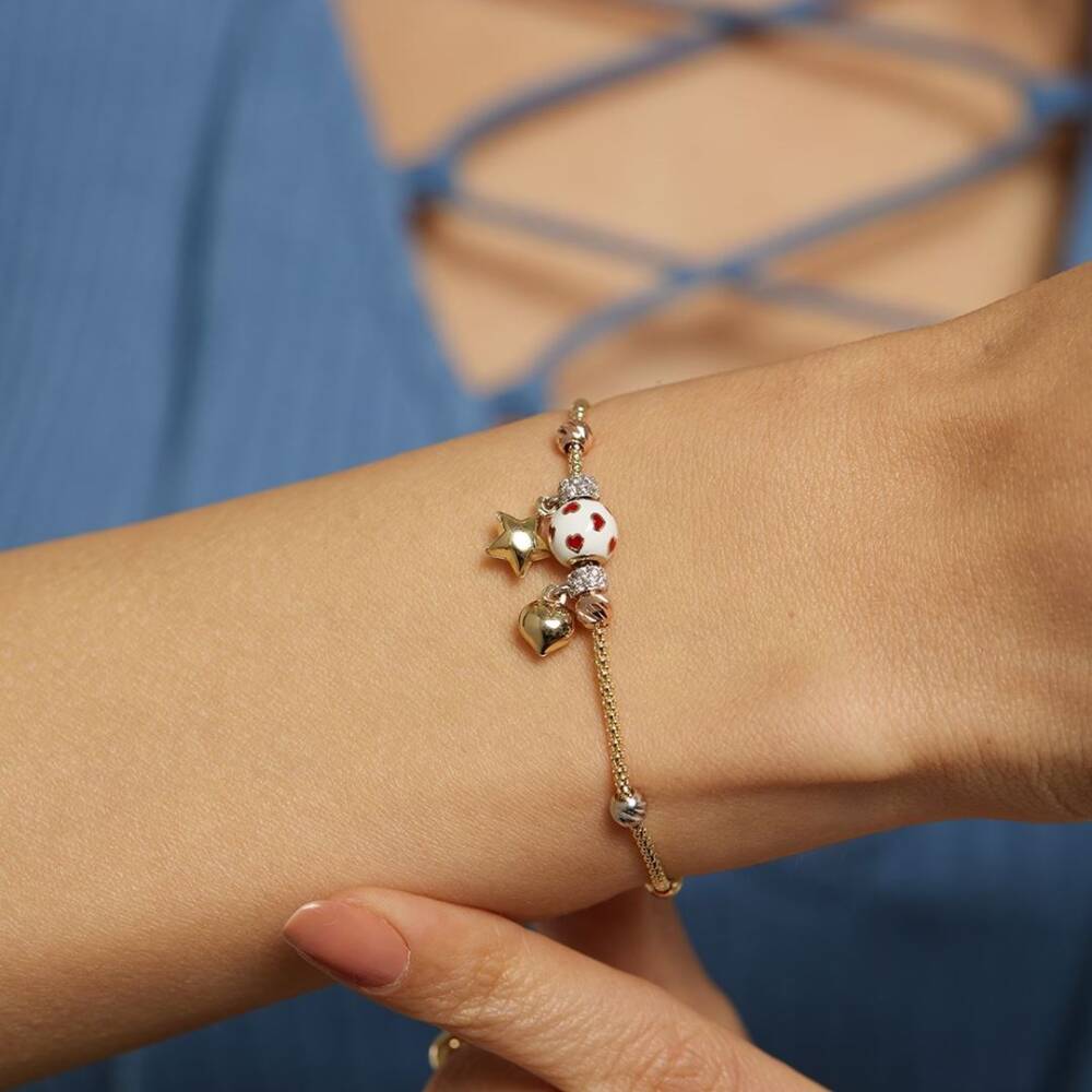 Kalp Ve Yıldız Sallantılı Mineli Altın Şans Bilekliği - 1