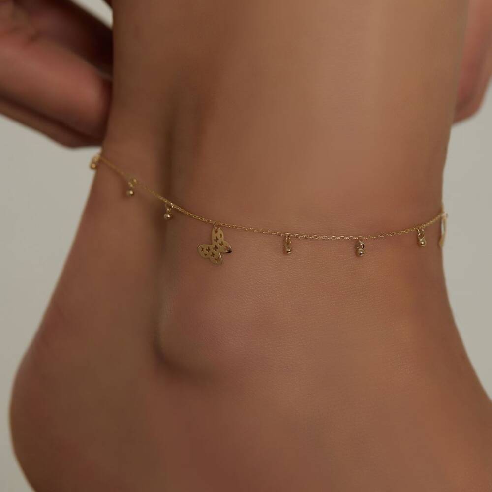 Kelebek Ve Top Sallantılı Altın Halhal - 1