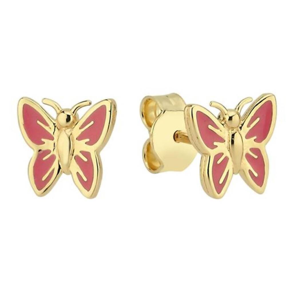 Kırmızı Mineli Kelebek Figürlü Altın Çocuk Küpesi - 1