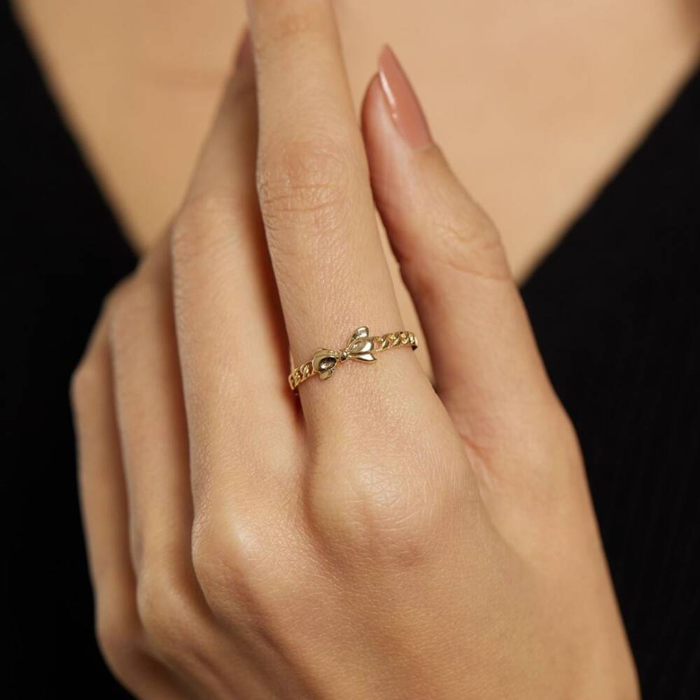Kurdeleli Zincir Tasarımlı Altın Yüzük - 1