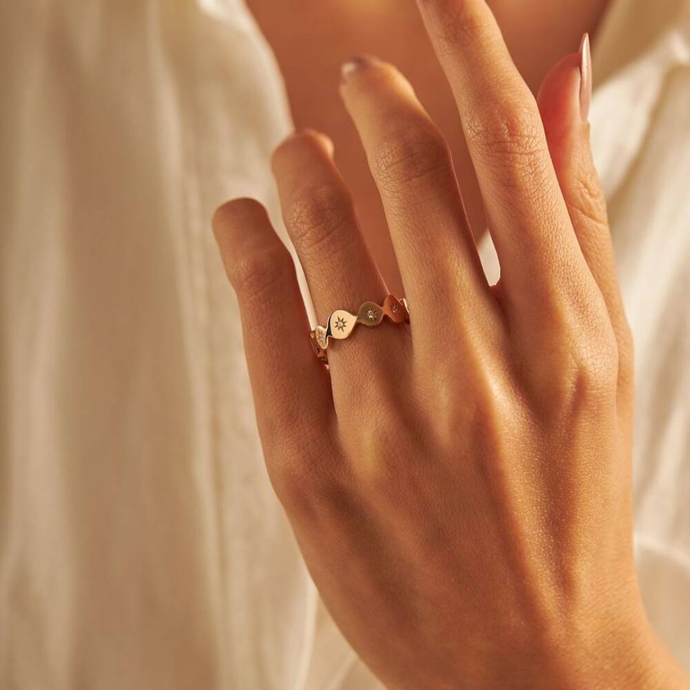 Kutup Yıldızı Detaylı Plaka Altın Yüzük - 1