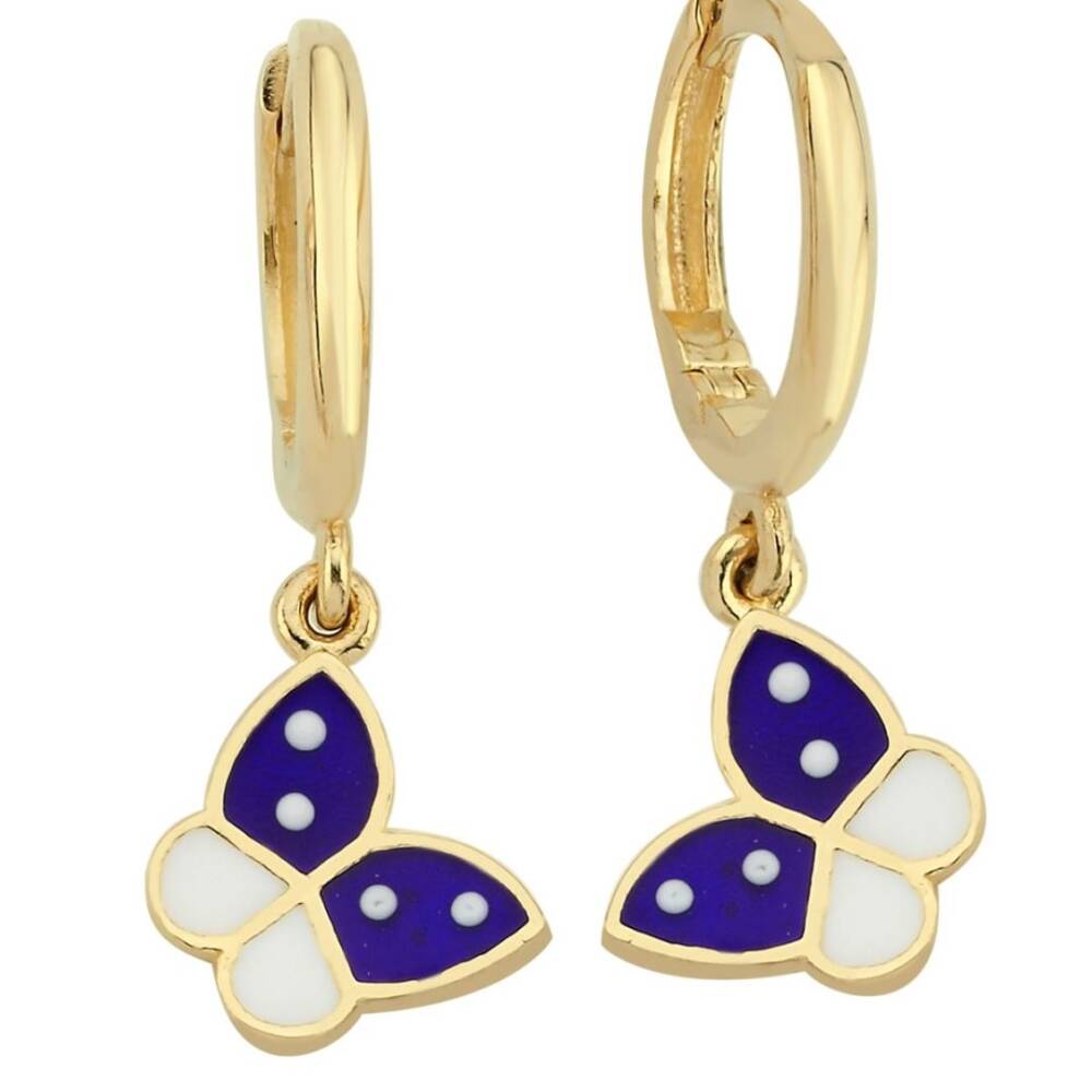 Lacivert Beyaz Mineli Kelebek Altın Çocuk Küpe - 1