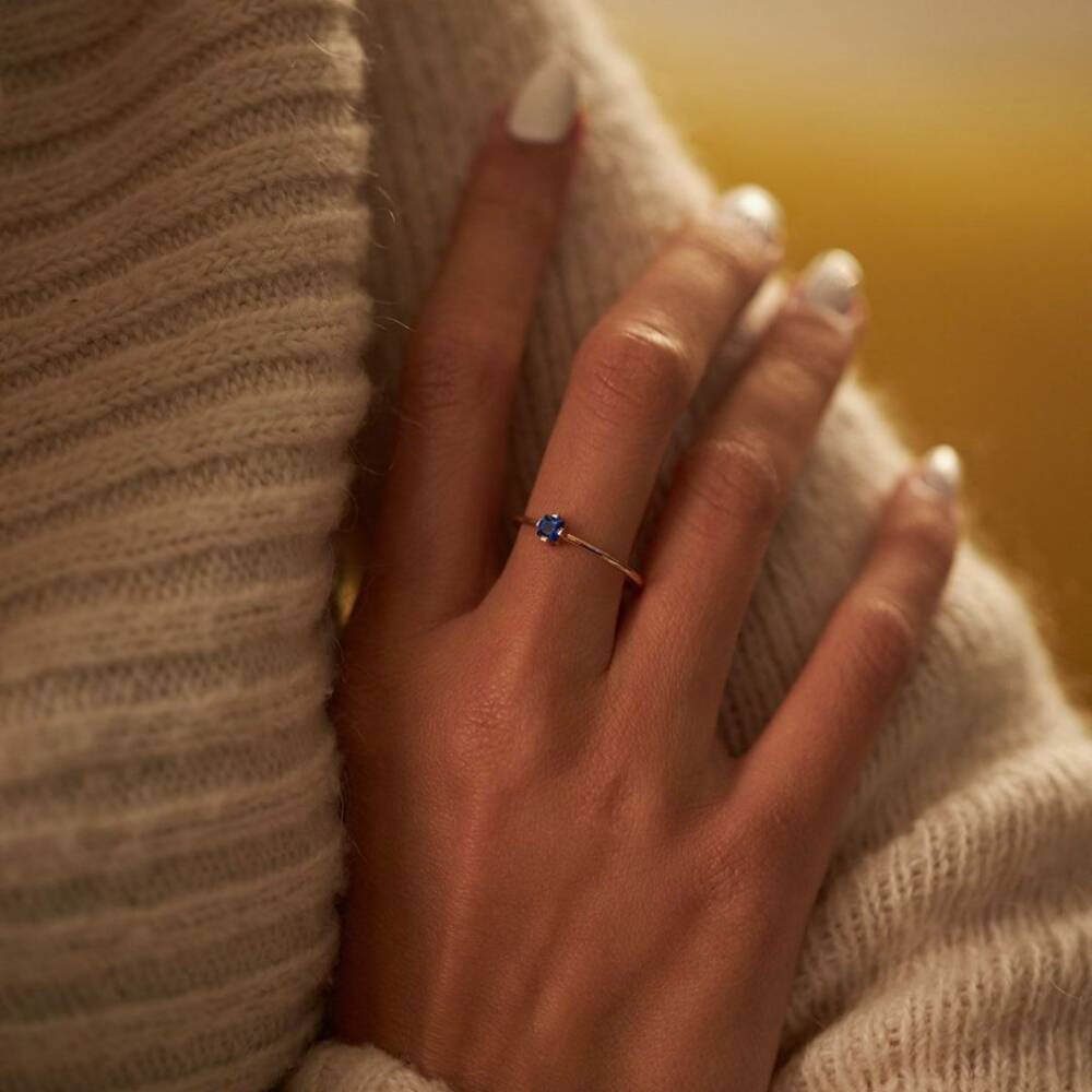 Lacivert Kare Taşlı Altın Yüzük - 1