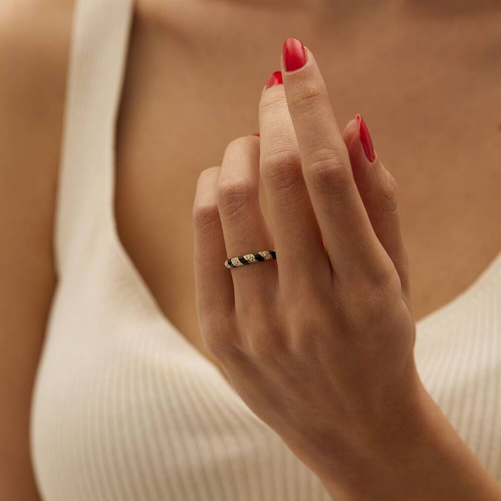 Lacivert Mineli Taşlı Sarmal Model Altın Yüzük