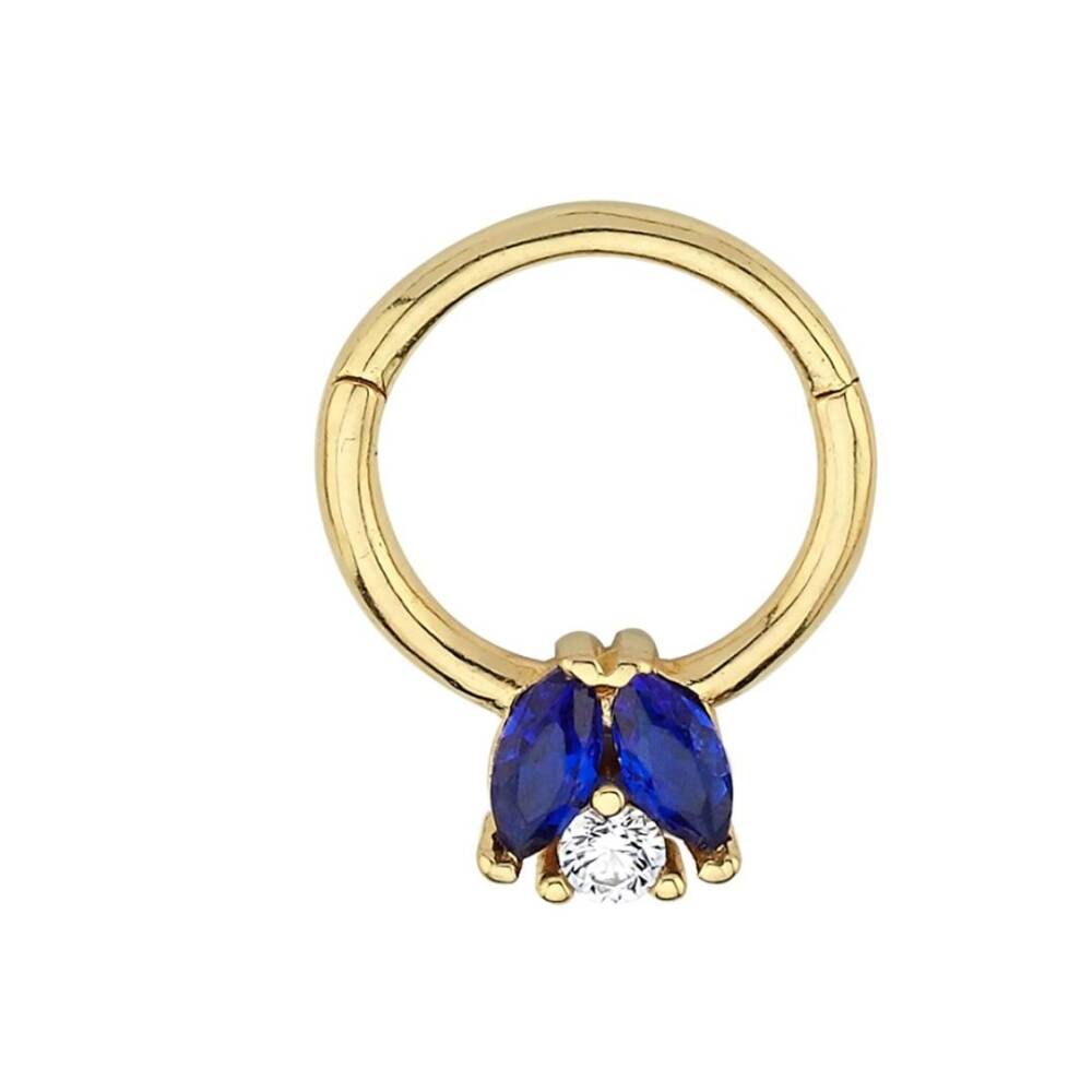 Lacivert Oval Taşlı Altın Helix Küpe - 1