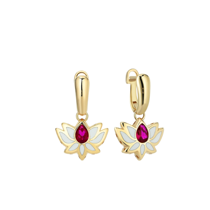 Lotus Beyaz Mineli Cetaş Küpe - 1
