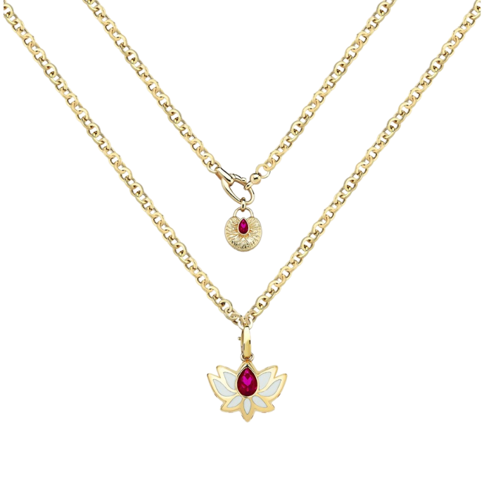 Lotus Beyaz Mineli Çift Sıra Cetaş Kolye - 1