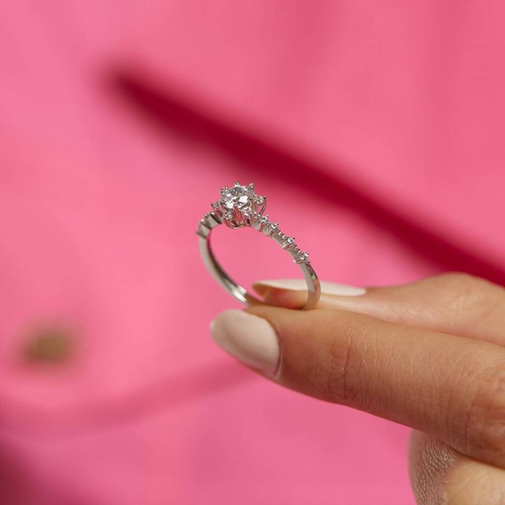 Lotus Model Tektaş Beyaz Altın Yüzük