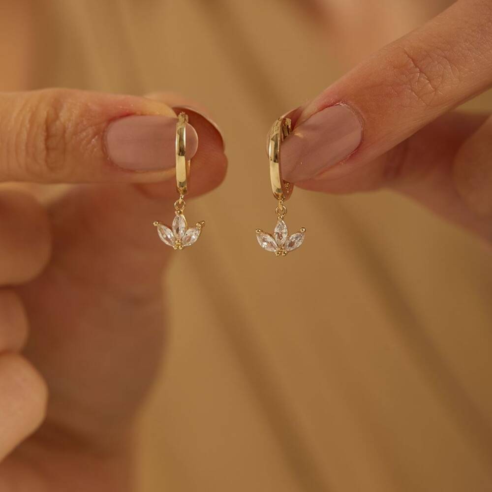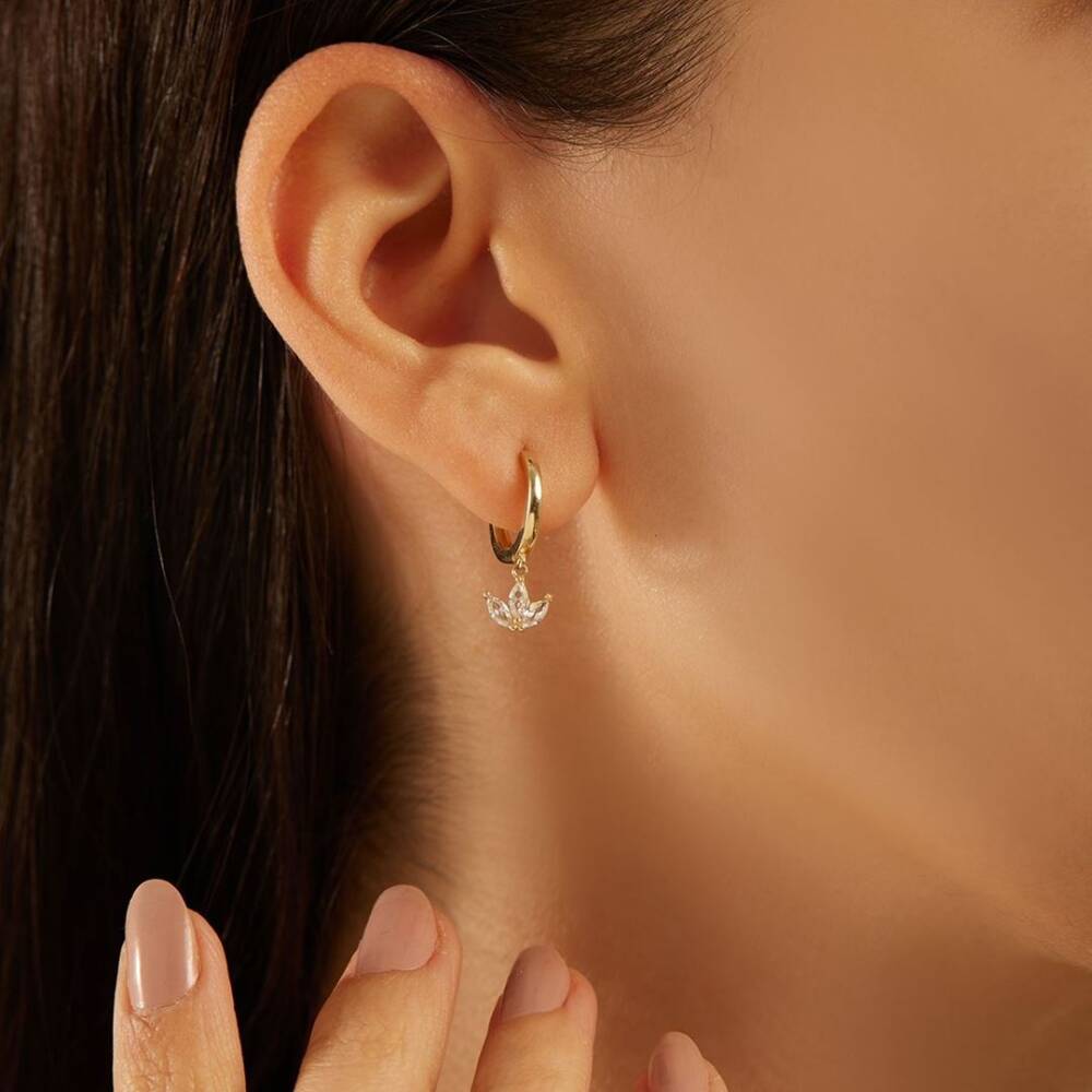 Markiz Taşlı Sallantılı Altın Küpe - 1