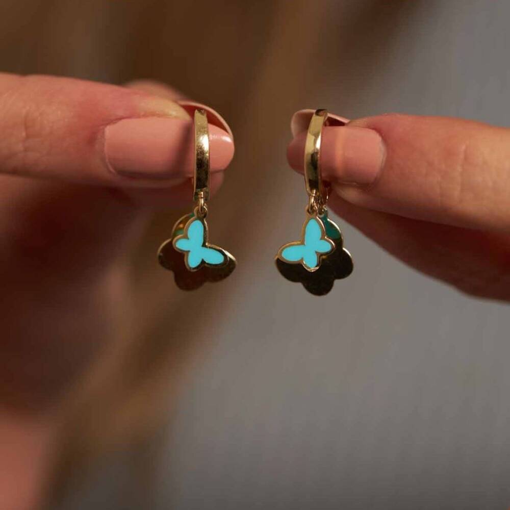 Mavi Kelebek Mineli Sallantılı Altın Küpe - 1