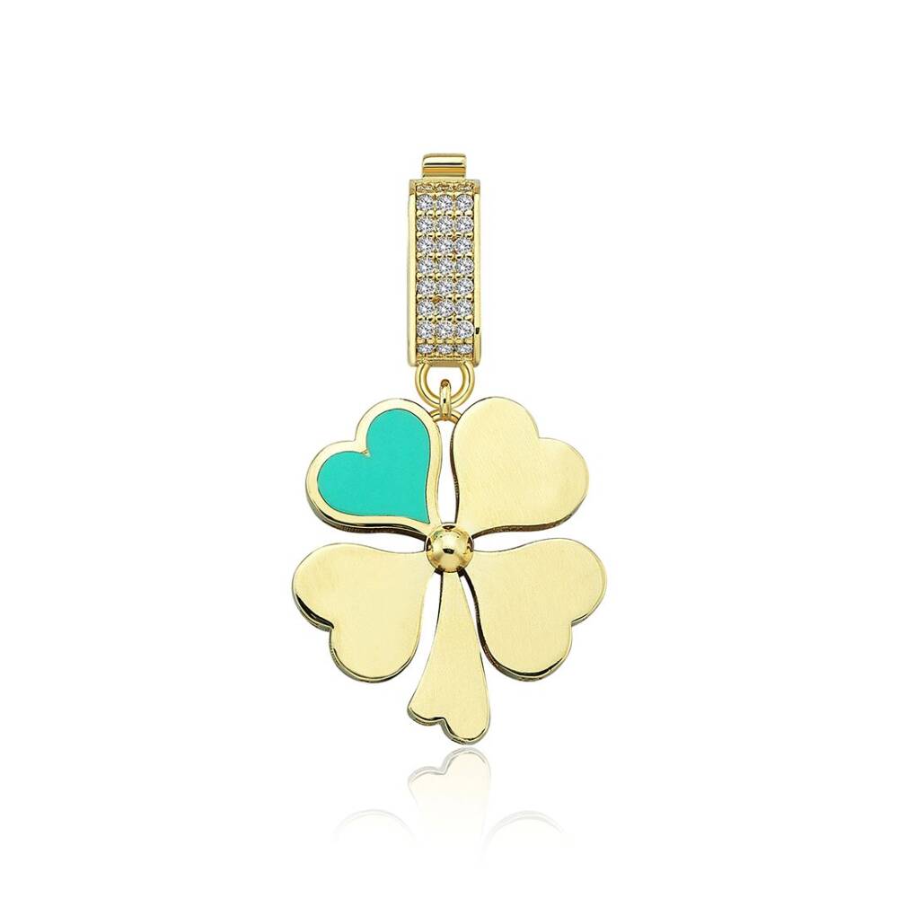 Mavi Mineli Dört Yapraklı Yonca Charm