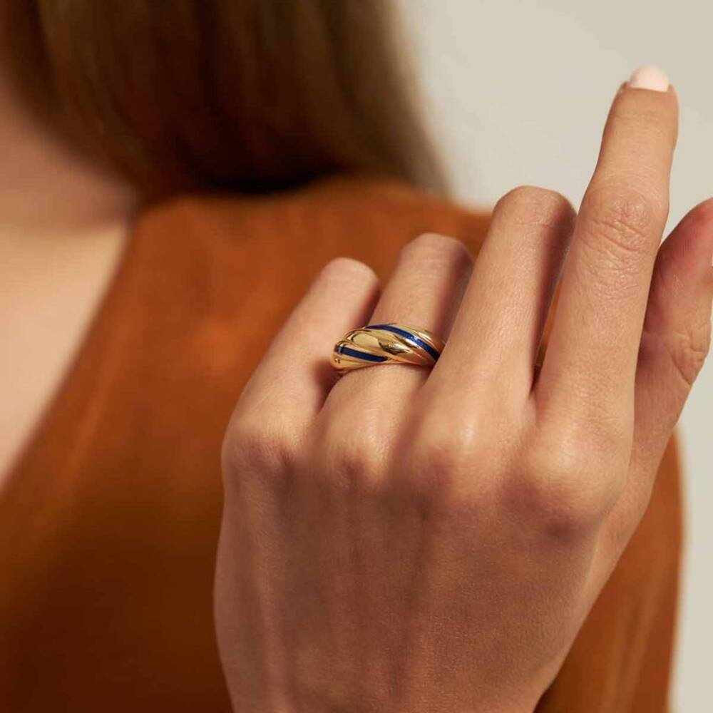 Mavi Mineli İstiridye Altın Yüzük