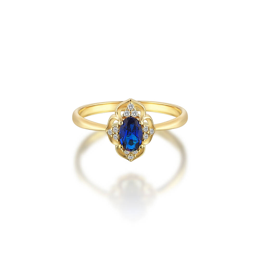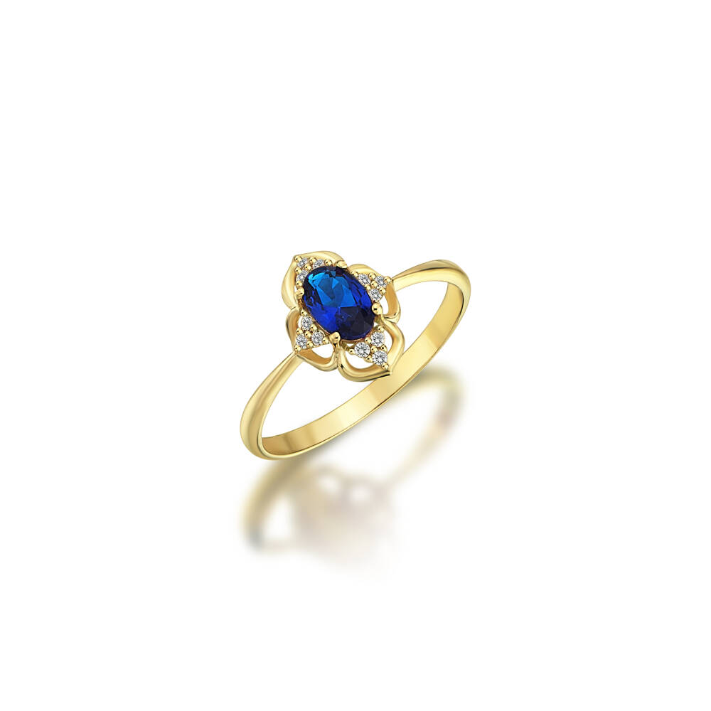 Mavi Taşlı Oval Kesim Altın Yüzük - 1