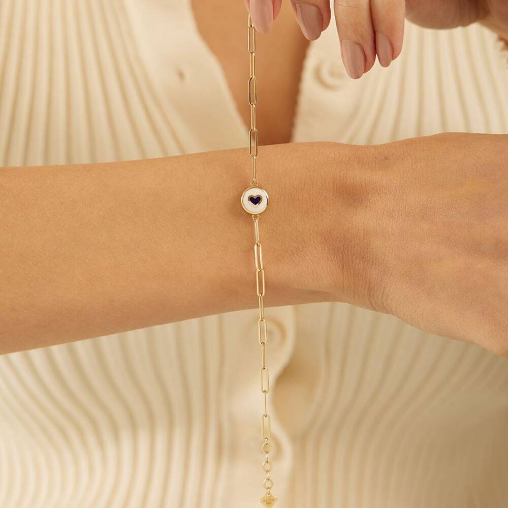 Mineli Kalp Ataş Zincirli Altın Bileklik - 1