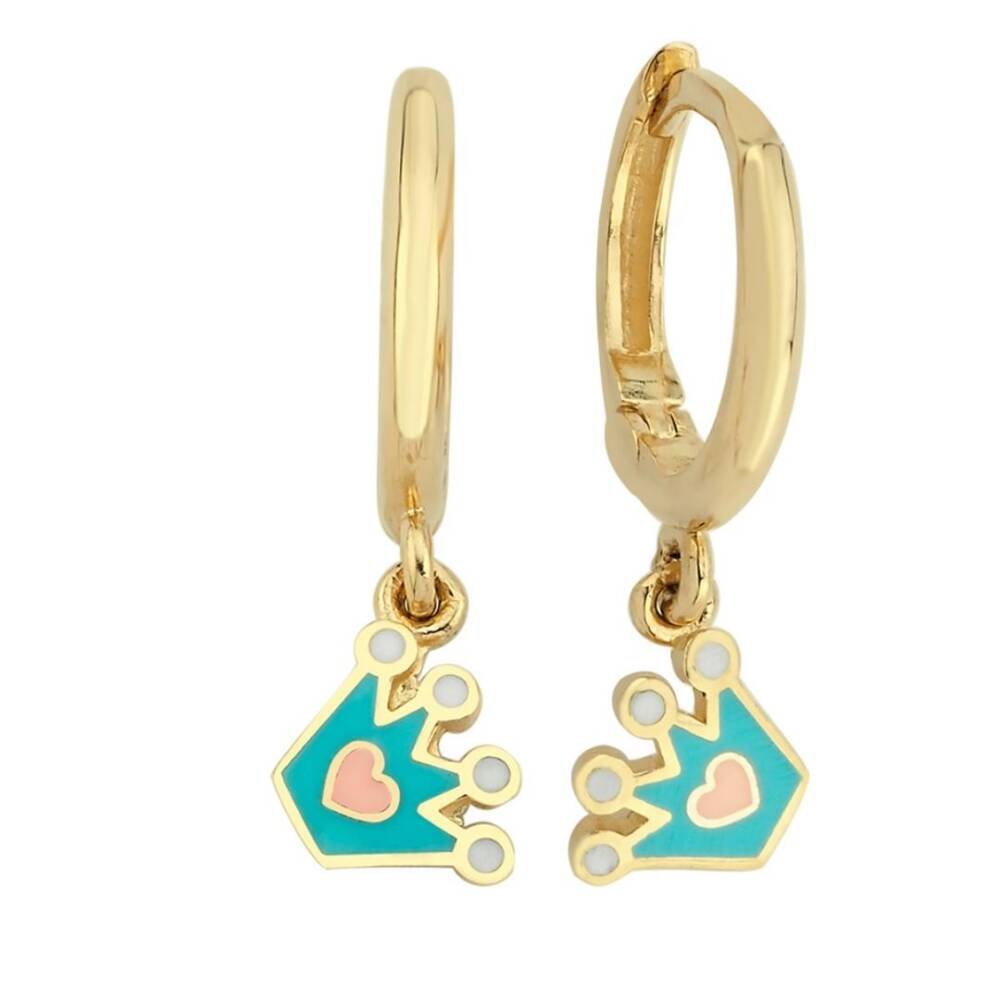 Mineli Kalpli Kraliçe Taç Sallantılı Altın Çocuk Küpesi