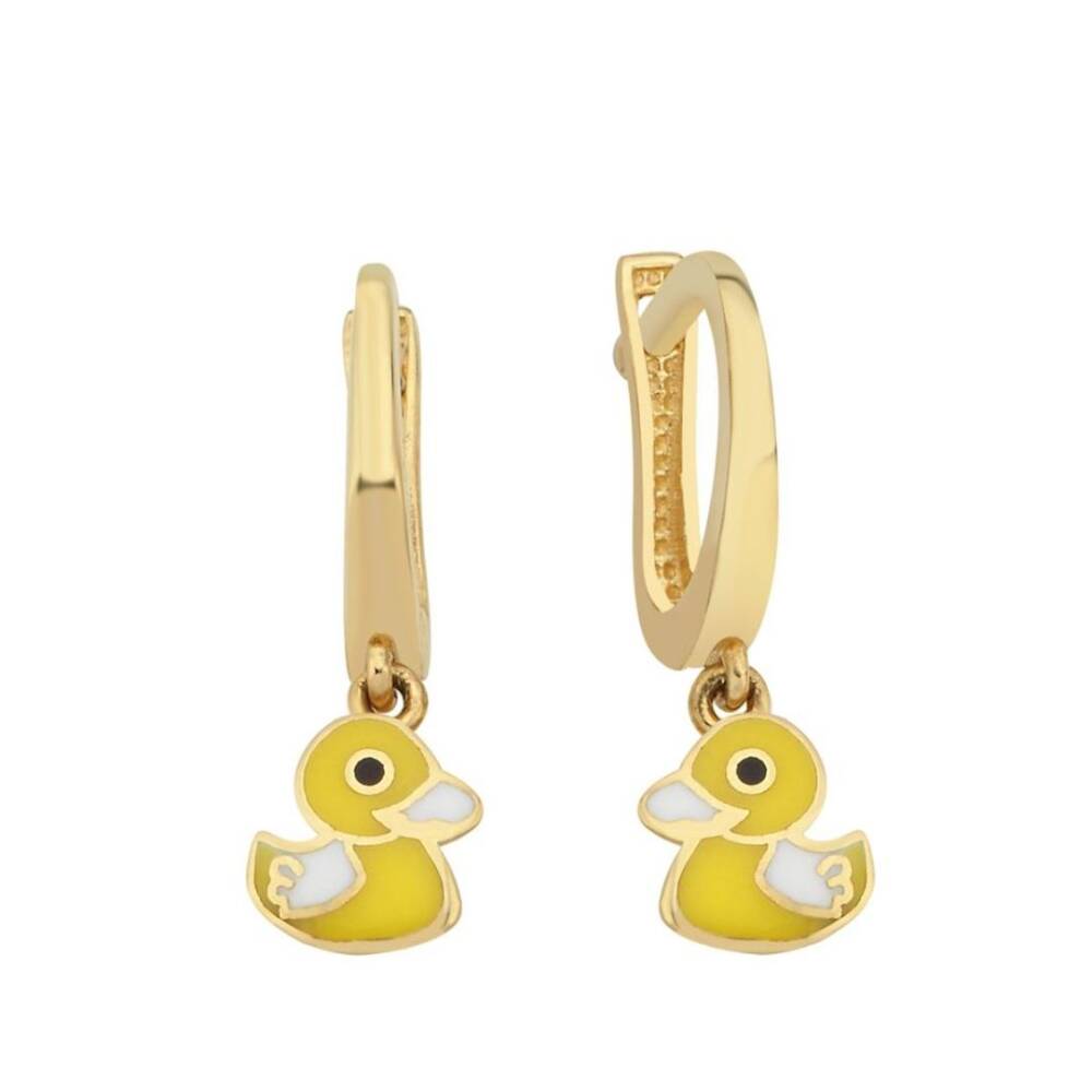 Mineli Ördek Sallantılı Altın Çocuk Küpesi - 1