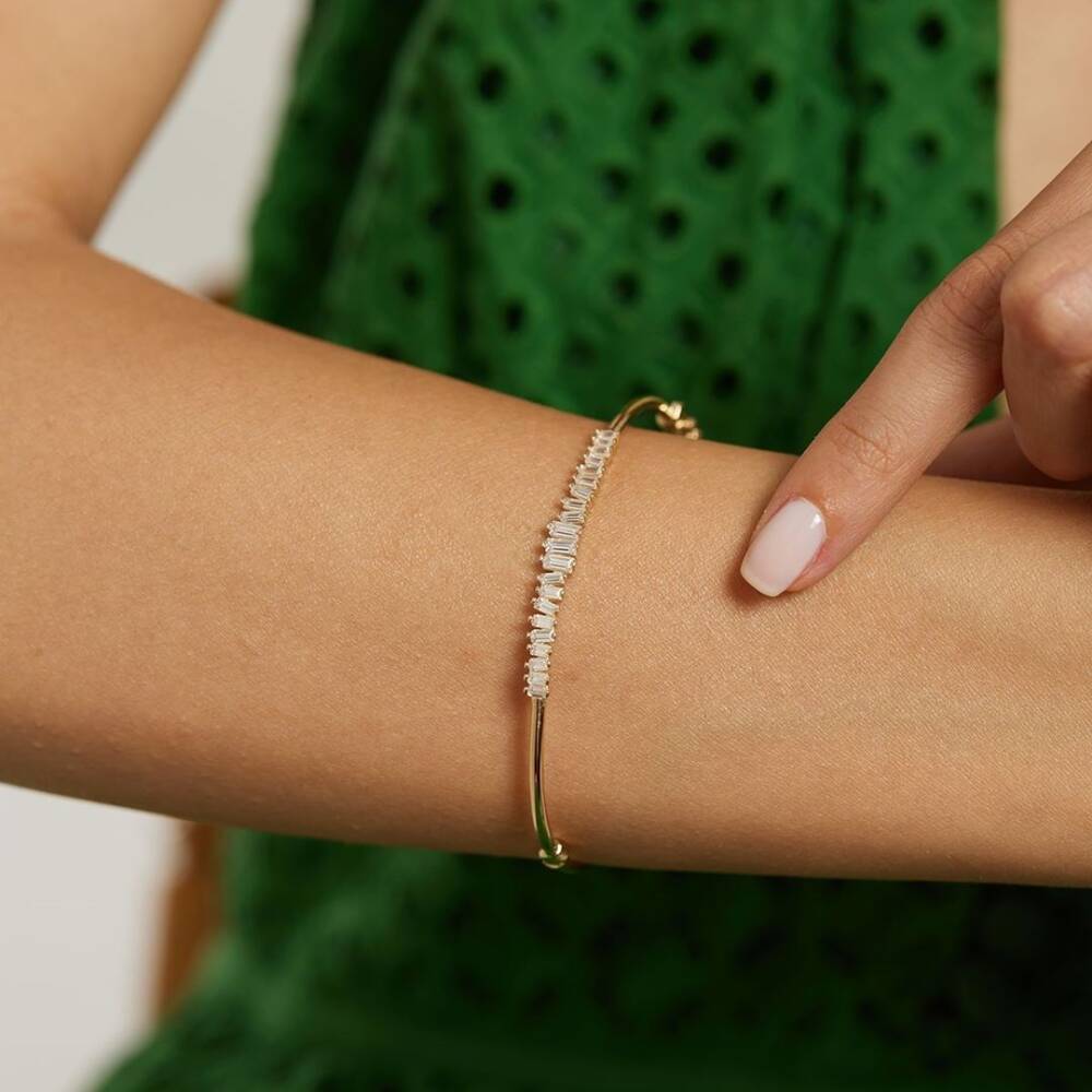 Mini Dikdörtgen Taşlı Altın Kelepçe Bilezik - 1