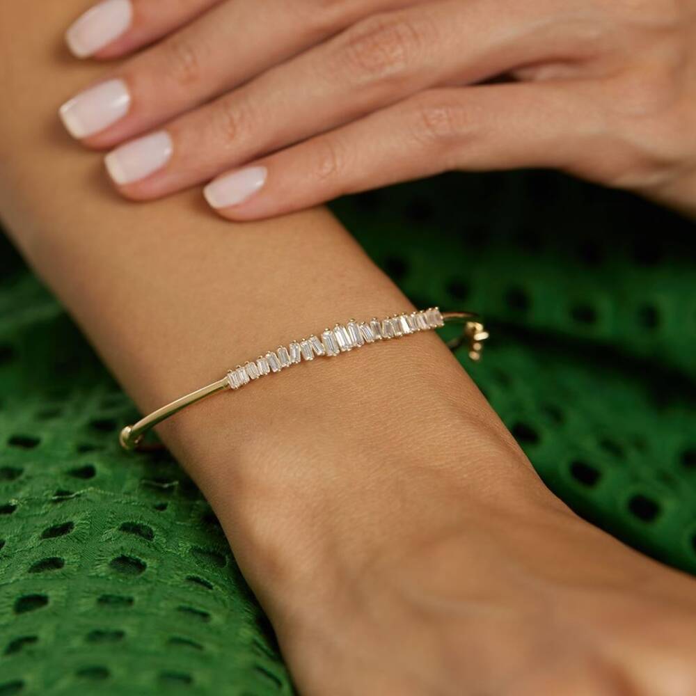 Mini Dikdörtgen Taşlı Altın Kelepçe Bilezik - 2