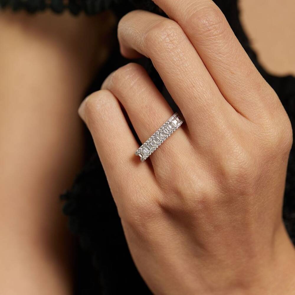 Minimal Baget Taşlı Beyaz Altın Yüzük - 1
