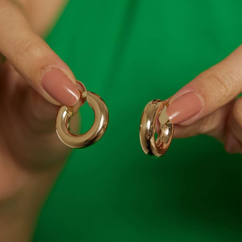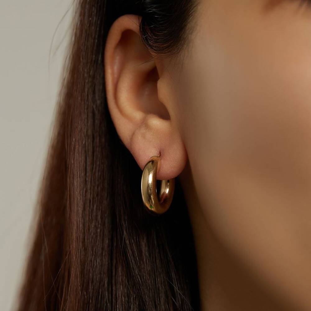 Minimal Bombeli Kalın Halka Altın Küpe - 1