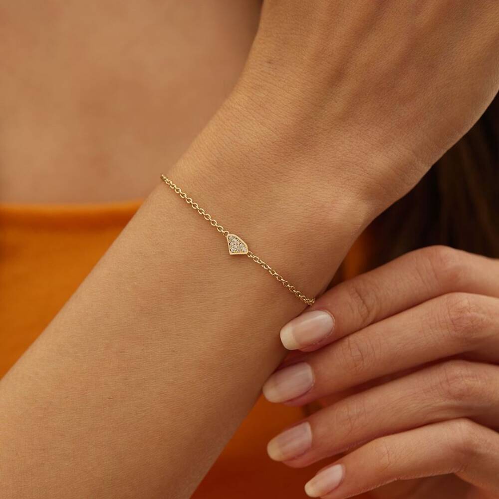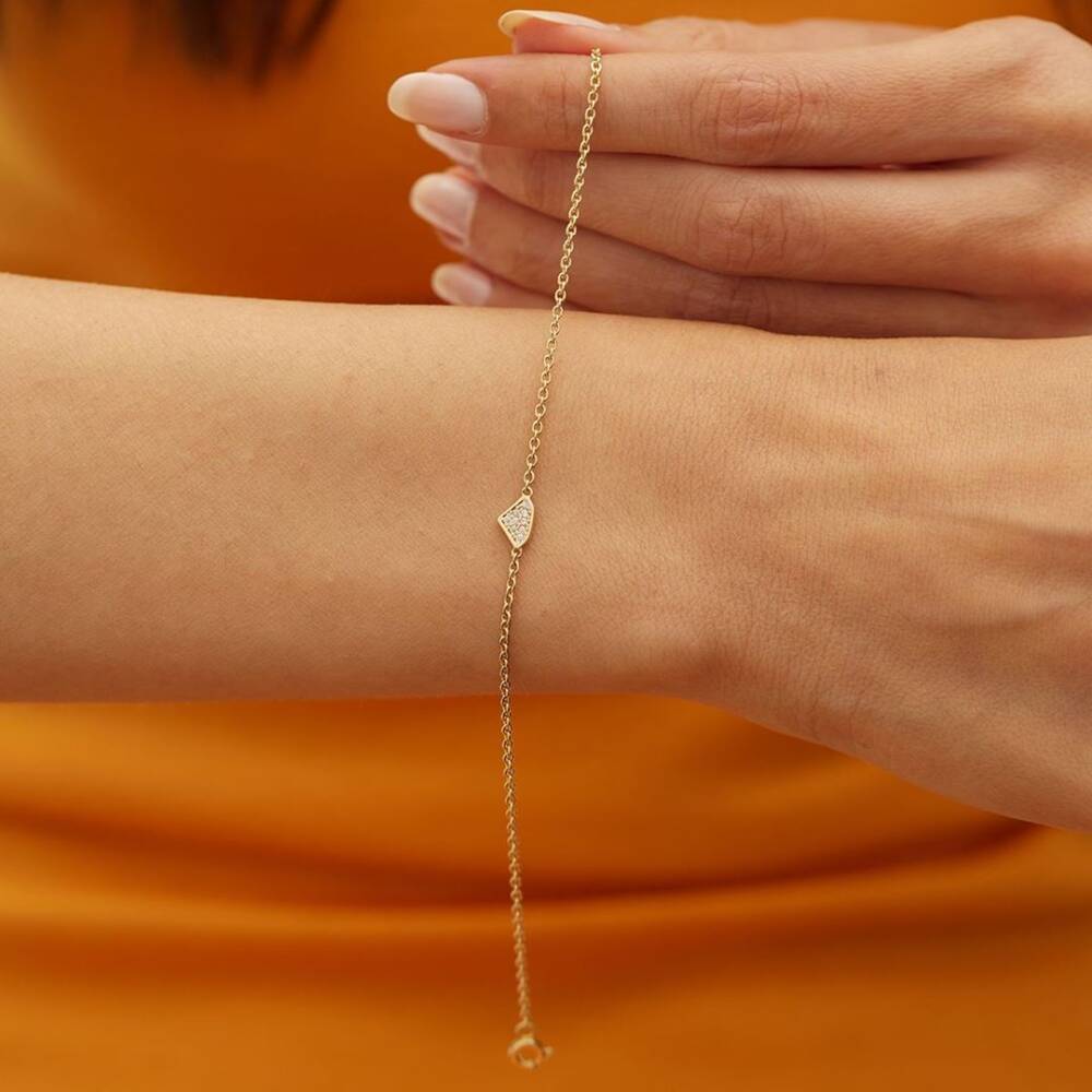 Minimal Elmas Motifli Taşlı Altın Bileklik - 1