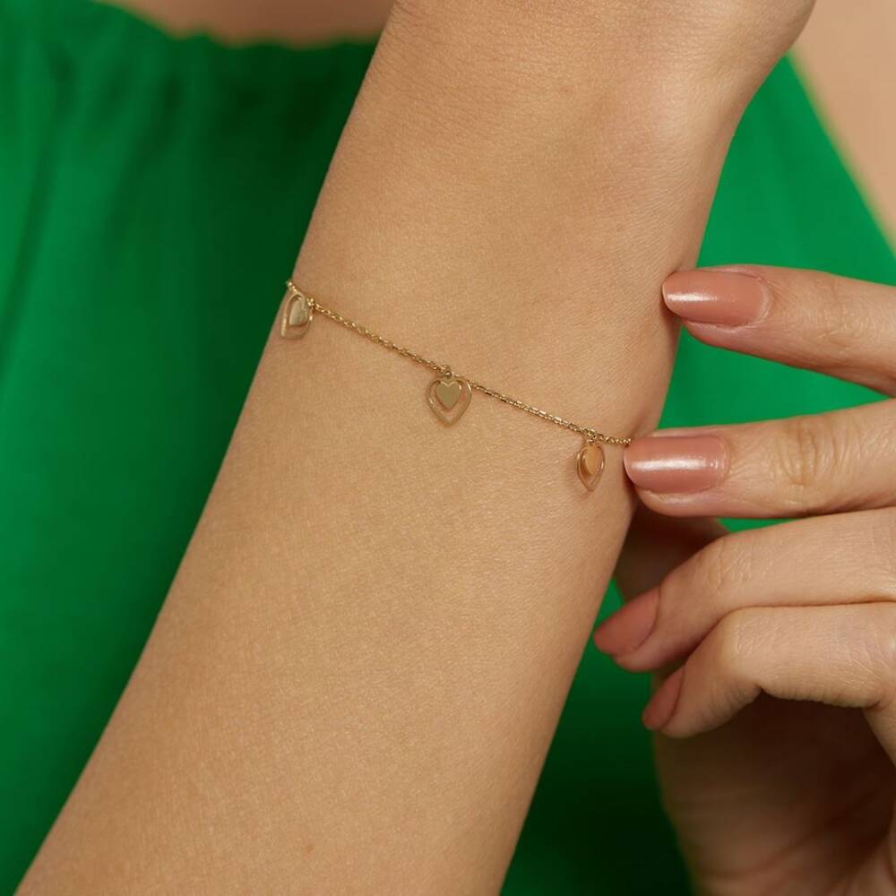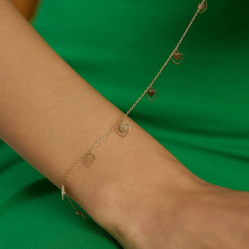Minimal İç İçe Kalp Sallantılı Altın Bileklik - 2