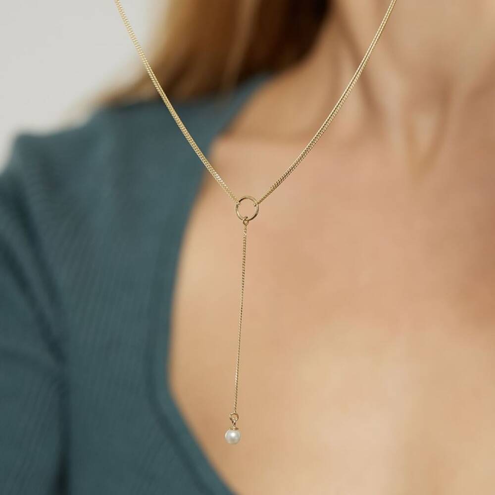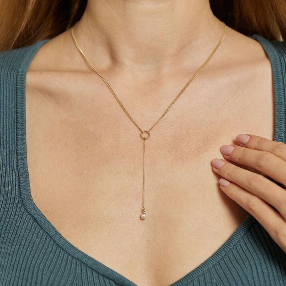 Minimal İnci Sallantılı Altın Zincir Tasarım Kolye