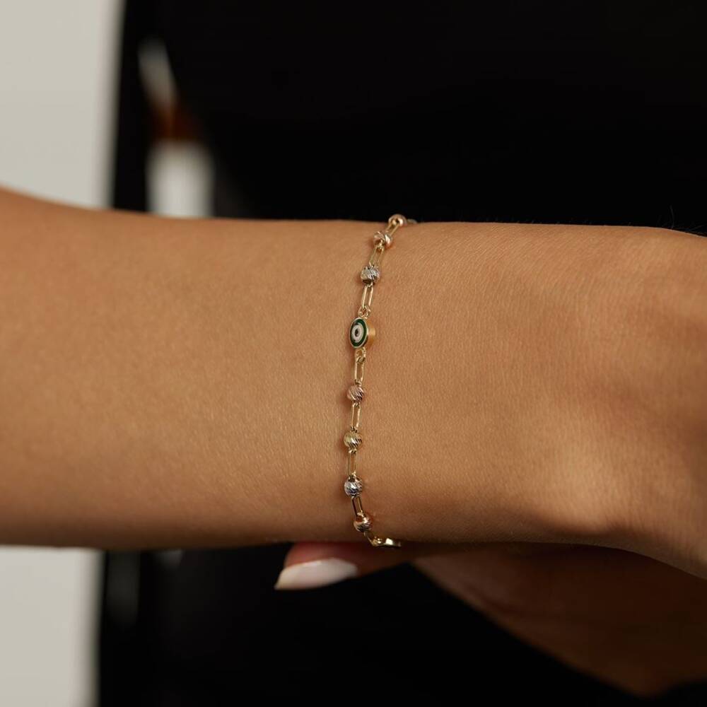 Minimal Nazar Boncuklu Ve Dorikalı Altın Bileklik - 1