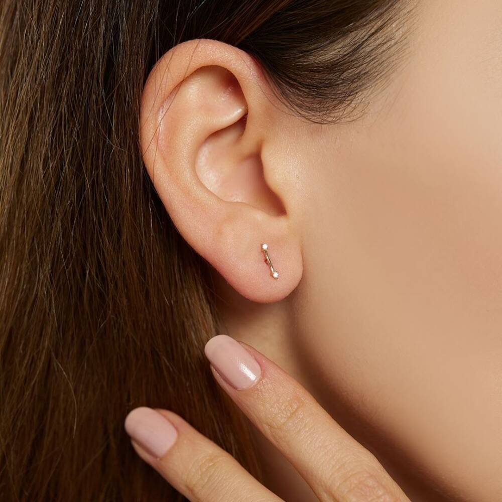 Minimal Taşlı Çizgi Altın Küpe - 1