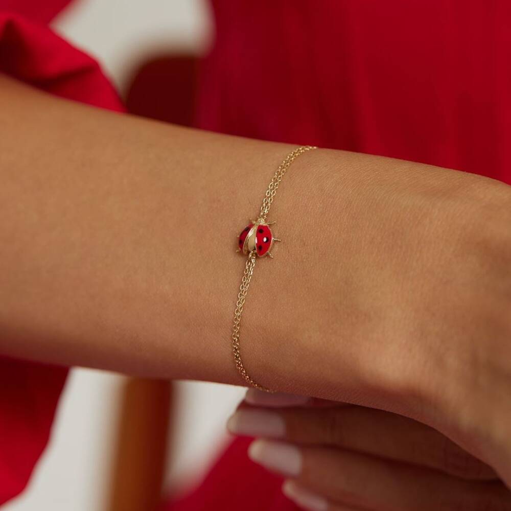 Minimal Uğur Böcekli Altın Bileklik - 1