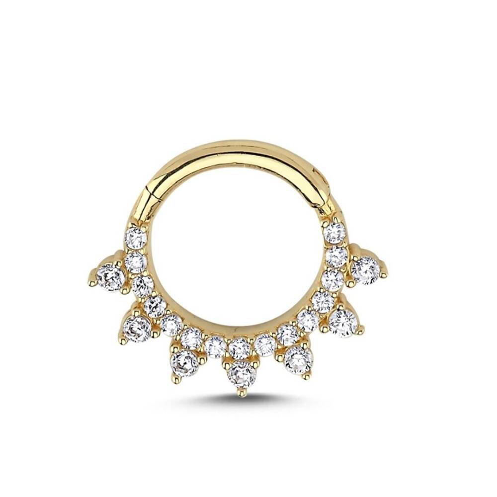 Modern Tasarımlı Taşlı Altın Tragus Helix Küpe
