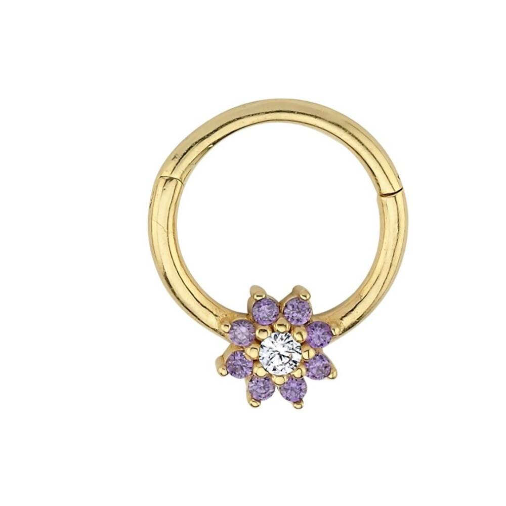 Mor Taşlı Çiçek Altın Helix Piercing - 1
