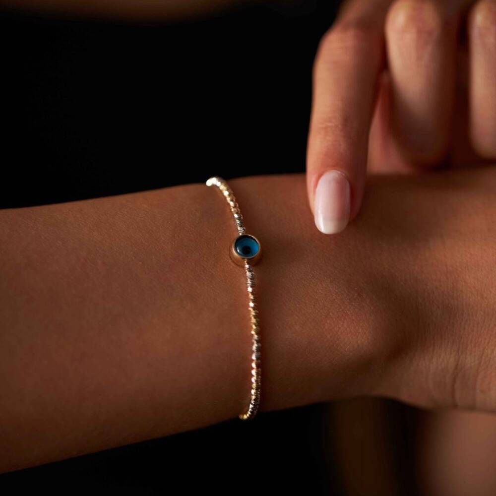 Nazar Boncuklu Dorika Top Zincirli Altın Bileklik - 1