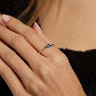 Nazar Boncuklu Minimal Altın Yüzük - 1