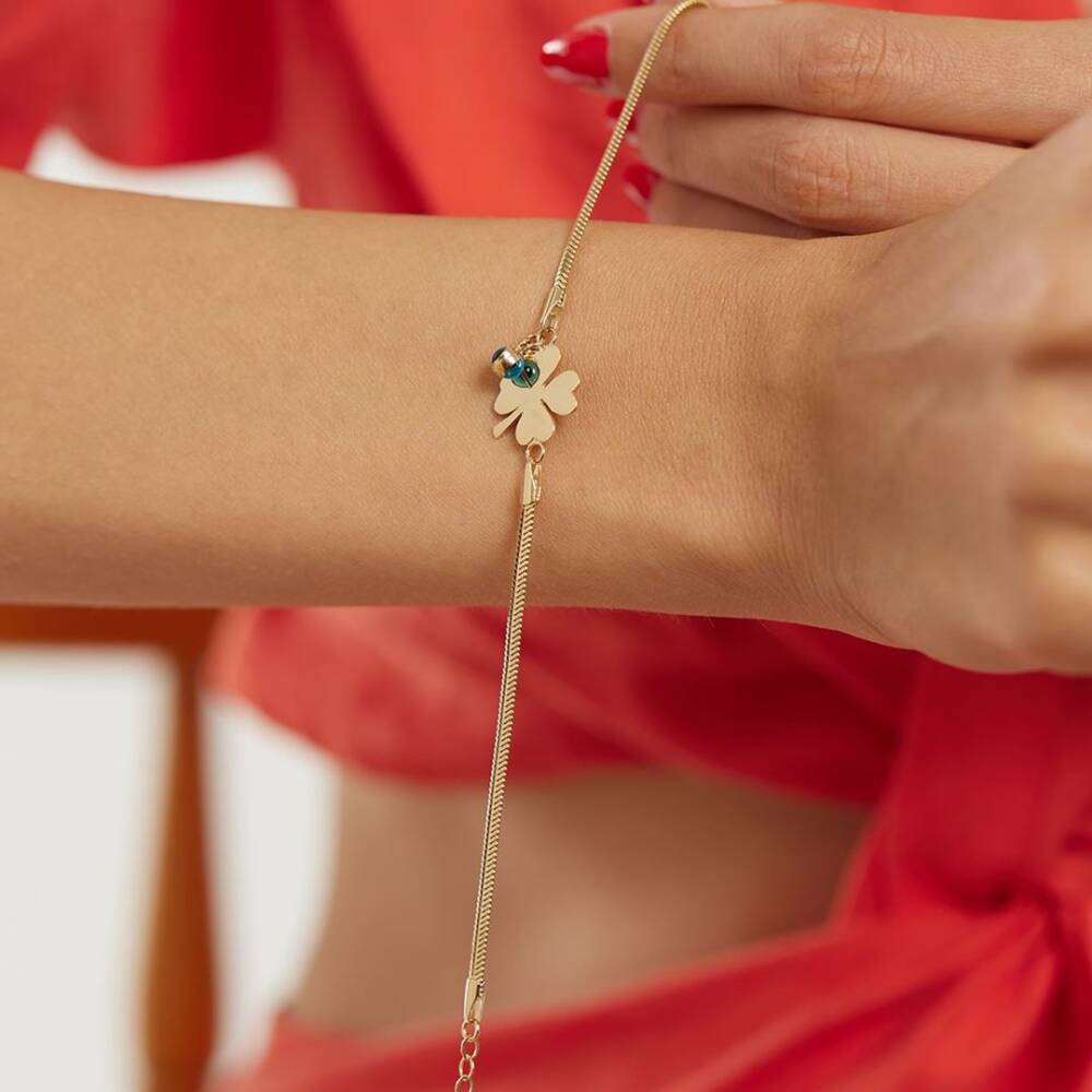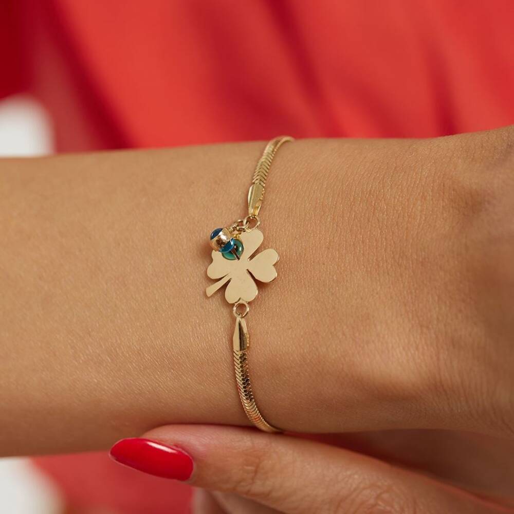 Nazar Boncuklu Plaka Yonca Altın Bileklik - 2