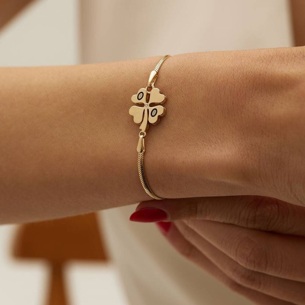 Nazar Boncuklu Yonca Balıksırtı Zincir Altın Bileklik - 2