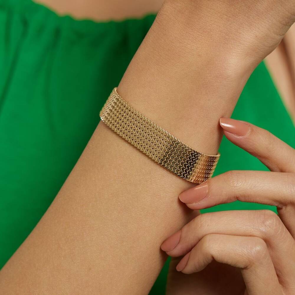 Örme Zincir Tasarımlı Kalın Altın Bileklik - 2