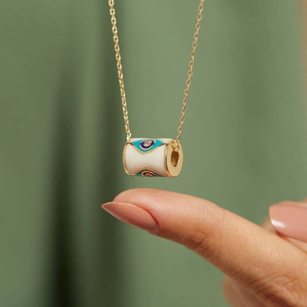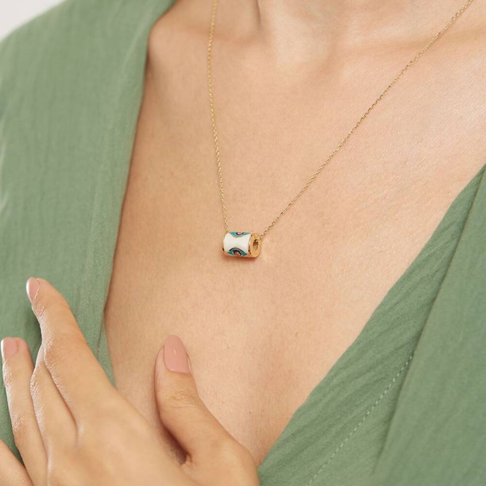 Ortası Beyaz Mineli Nazar Boncuğu Desenli Altın Kolye