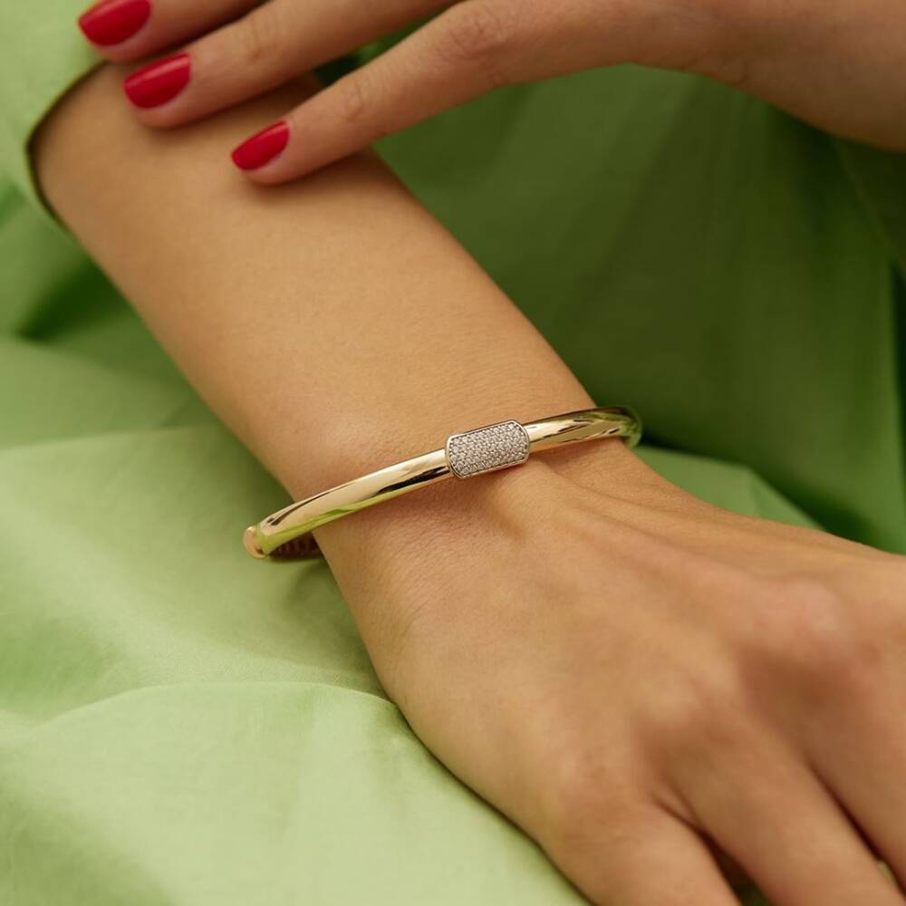 Ortası Minimal Taşlı Altın Kelepçe Bilezik - 1